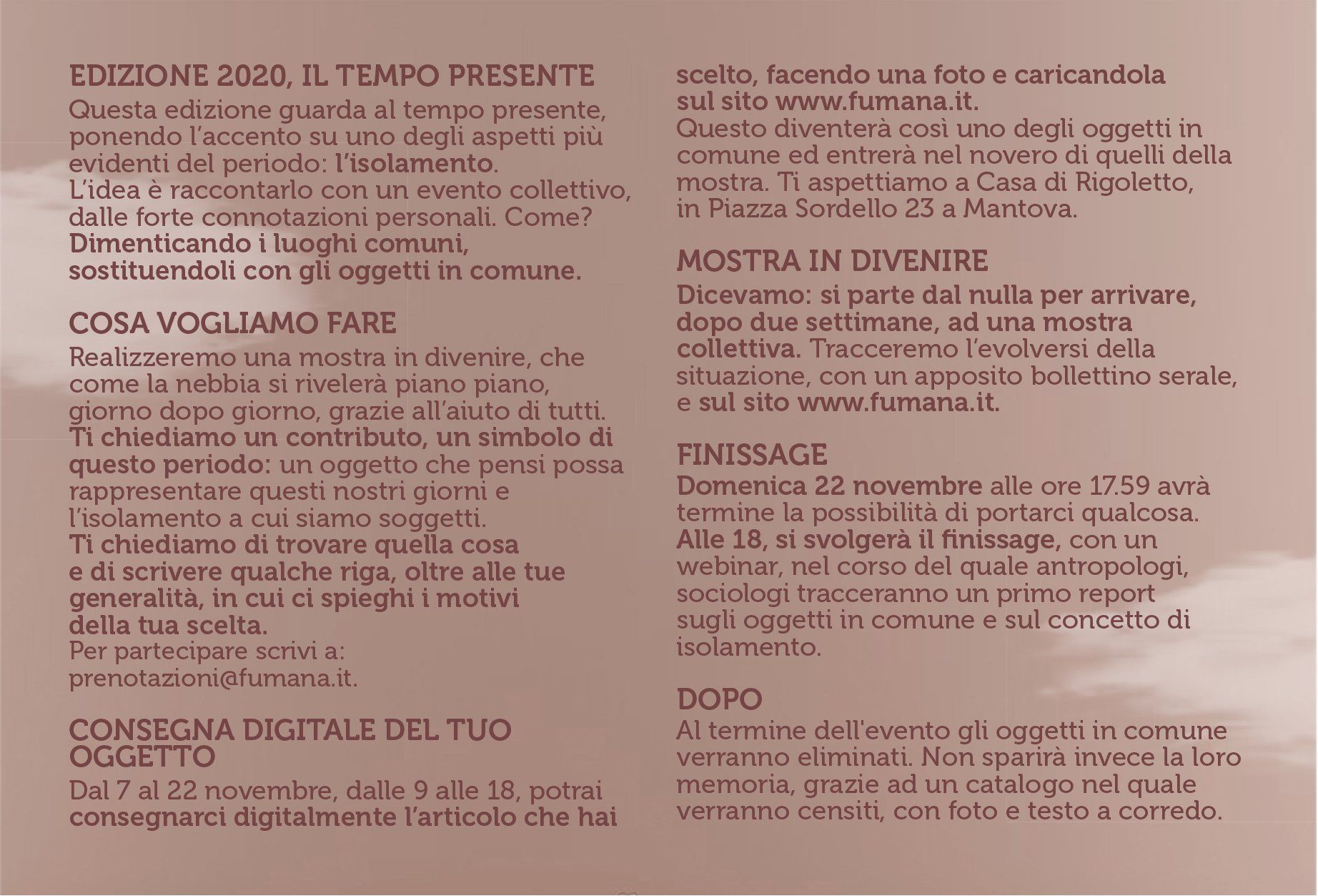 FUMANA è ancora una volta un viaggio collettivo, che vuole essere una delle tante tappe per uscire dalla nebbia o per rimanerci, perché alla fine è sempre la fantasia e la curiosità che si fanno scintilla degli immaginari delle pianure.