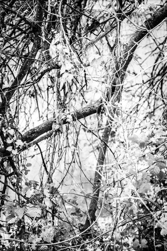 Molti/ sono i rami bianchi sulle piante/ sembra tutto